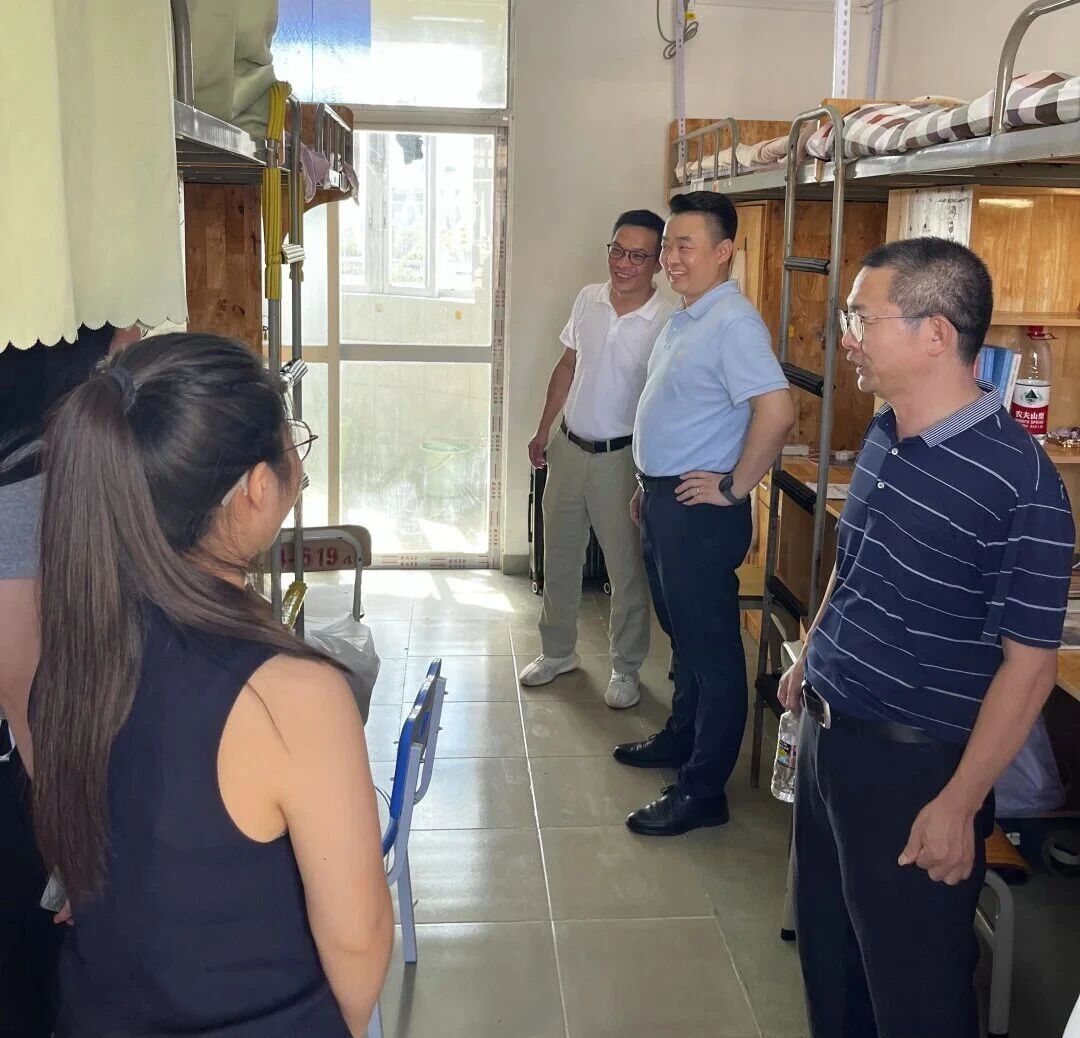 2025年9月4日下午,我院党总支书记符健敏、副院长邓和军与椰风书院党委书记郑鹏带领学院教职工代表一行,深入2025级研究生新生宿舍进行走访慰问,向刚刚入校的新同学们表达了学院的热烈欢迎和诚挚关怀。